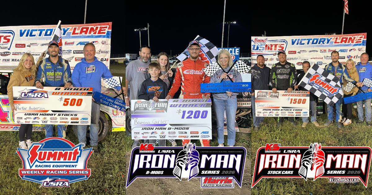 Memphis, MO (April 25, 2026) — Parker Anderson made sure the broom stayed out on Saturday night at Scotland County Speedway, sweeping the weekend in the USRA Hobby Stock division during the Jon Fuller Memorial.